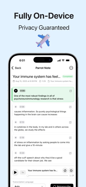 - No internet required: Transcription works offline